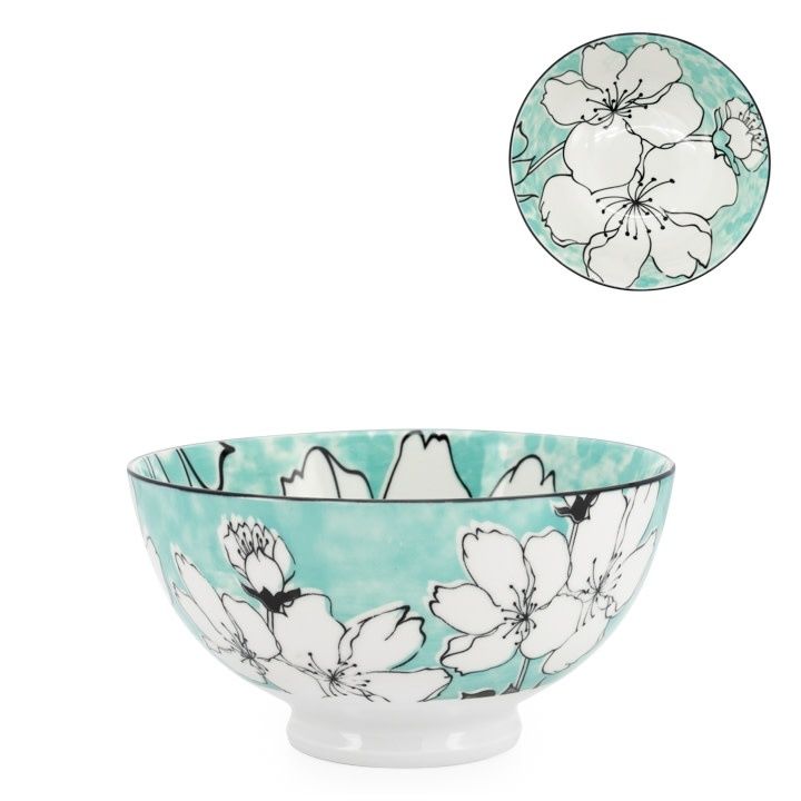 Bol en procelaine Kiri 8 Turquoise Daisy
